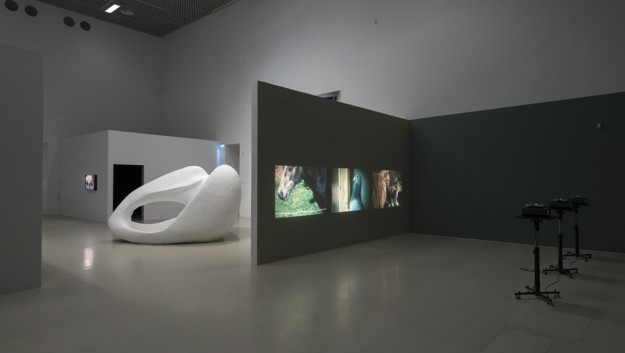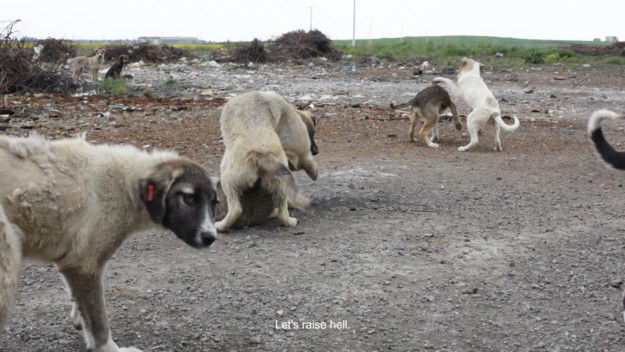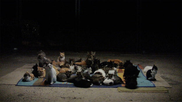 Annika Eriksson’s long-running investigation into different forms of social interaction and organization also includes that between humans and other animals. This interestingly aligns her practice to the expanding field of Animal Studies. How do we perceive each other as humans and as animals? And how to we relate to other living organisms? In the videos I am the dog that was always here (loop) (2013), and The Community (2010), we encounter a group of stray dogs that has been displaced to the outskirts of an expanding city, and a group of cats that has previously lived as pets but now live together in a park. Both works address the gentrification and associated sanitation of our cities, while also focusing on the emergence of informal social sites that in turn have generated new modes of existence. The animals portrayed here are very much present in their own right, but also function as anthropomorphic protagonists in narratives on social change.