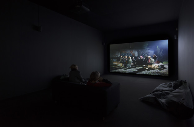 A number of the works exhibited in The Social, place themselves in the gaps that are created when social models fade into history before new ideas and visions have materialized. One example is the video In Preparation for a Psychodrama (2015), set in Folkets Park (The People’s Park) in the Swedish town of Grängesberg – which used to be a thriving mining community before its industries closed down. In the video, we encounter a group of local amateur actors who are making repeated attempts to create new meaning, in an environment shaped by ideals and visions of the past.