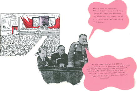 Lene Berg’s film Stalin by Picasso or Portrait of Woman with Moustache (2008) tells the story of this portrait, whose publication caused an unprecedented scandal. The film uses a kind of scrapbook aesthetic to convey how the highly politicized tactics of the cold war suddenly came to include unhinged discussions about what was art and what wasn’t, what kind of picture making was to be labeled as immoral, and what really qualified as realism. The film also develops into a tale of two of the many “great men” of history, how their paths crossed, and how the mass-media images of them continue to evolve with time and with shifting political ideologies.