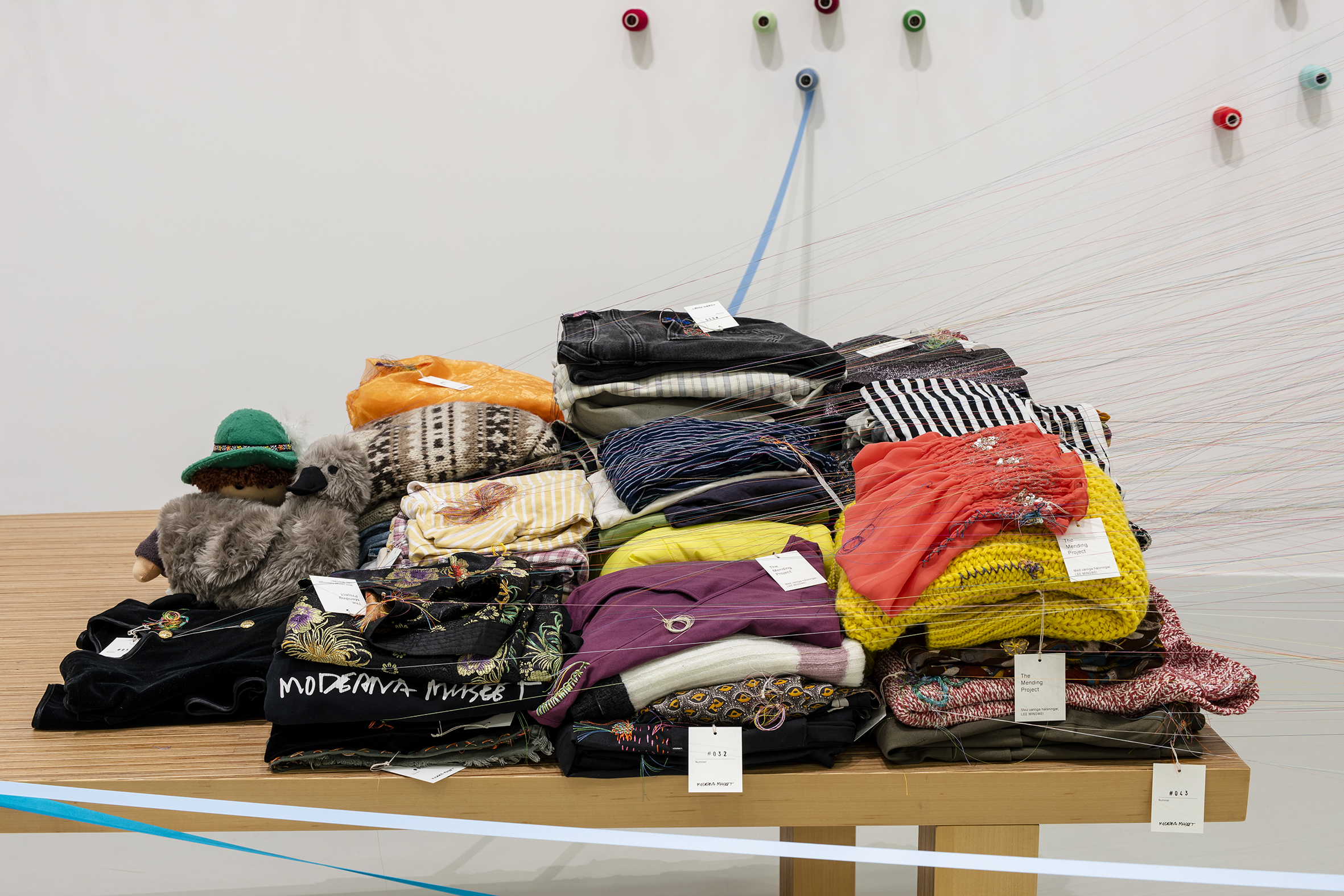 “The Mending Project” is an intimate exchange between two individuals: one who repairs and one whose garment is repaired. The visitor is invited to bring a garment that needs to be repaired or embellished. “Fabric of Memory” is the result of long conversations that began with a widely-cast net. The artist and the museum asked people to contribute textiles someone had made for them that had been saved through the years. A knitted scarf, a precious wedding dress, or velvet pants sewn for a teddy bear – garments with stories become exhibition objects and part of a dialogue about memories, relationships, and what a collection can be. “The Letter Writing Project” is an assignment that the viewer of the exhibition can choose to be part of, either through writing a letter or by reading letters written by others.