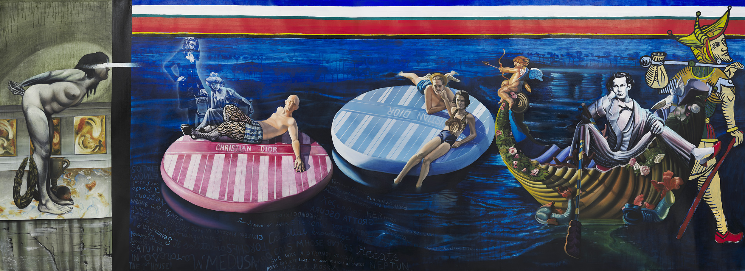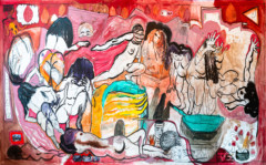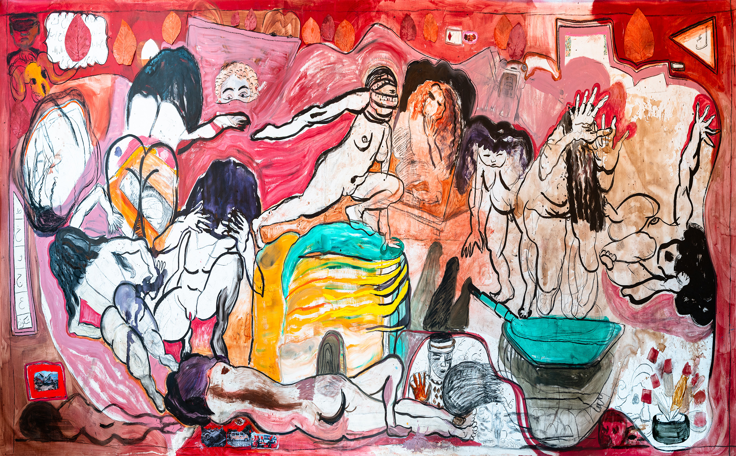 Grupputställningen “Nisabas hus: Måleriets nya berättelser” gör en djupdykning i samtida måleri. Utställningen lånar sitt namn från den mesopotamiska gudinnan Nisaba, som ursprungligen var beskyddare av spannmål och bokföring, men som parallellt med skriftens uppkomst också blev skrivandets och berättandets gudinna –den som lät berättelser ta materiell form. Nu åkallas hon på nytt – av curatorn Hendrik Folkerts – som den gudomliga beskyddaren av huset där målarna delar med sig av sina berättelser.
