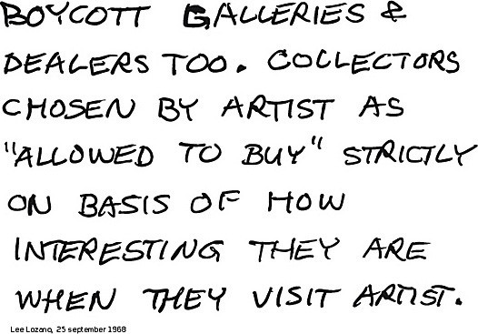 Lee Lozano was very active in New York in the 1960s, exhibiting at the Green Gallery, which featured artists such as Donald Judd, Robert Morris, Claes Oldenburg and Tom Wesselman. She also had exhibitions in, for instance, Cologne, and at the Whitney Museum of American Art in New York. In 1972, she decided to leave the New York art scene, marking her decision with the work Dropout Piece. Thereafter, she was gradually forgotten.