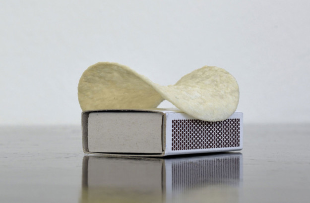 Various kinds of architectural models have a key role in Thomas Schütte’s artistic practice. He refers to these explorations as a way of opening up works to the viewer: “I use models because they are something anyone can understand. You can see them as a prototype for something bigger, something seen from a child’s perspective; you could see them as a public stage.” In his series One Man Houses (2003-2005), Schütte has combined units from an industrial ventilation system into shiny, minimalist sculptures. Later, Schütte made the houses in wood, slightly larger than life, and fitted them with carefully-made furniture. In 2007-2009, one of the houses was built in a life-size version in the Roanne region in France, and more recently, several of his architectural models have also been produced in the same dimensions. The most recent example is his own foundation and sculpture hall Skulpturenhalle, outside Düsseldorf, which opened in spring 2016. The architectural model Pringles (2011) is an early version of the building, where the curved roof is modelled on a potato crisp placed on a matchbox.