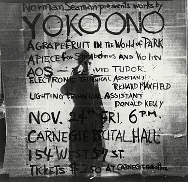 Yoko Ono moved from Japan to the USA with her family in the 1940s, and soon became a leading voice in New York’s most interesting artist circles, which worked with happenings, sound art, poetry and film. Alongside colleagues including George Maciunas, Marcel Duchamp and John Cage and others, Yoko Ono developed totally new modes of expression that questioned the artworld’s increasingly commercial preoccupations, and which left heroic high modernism behind.