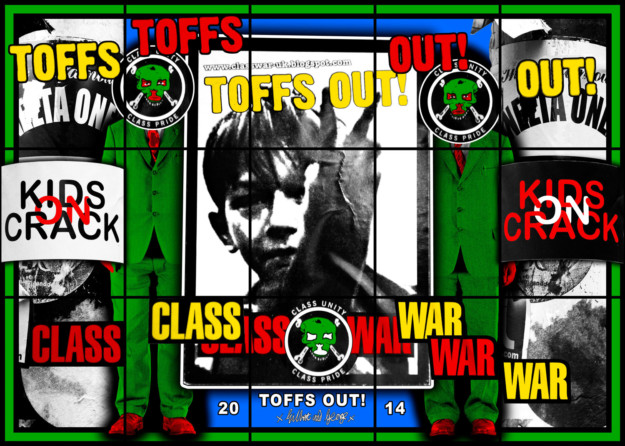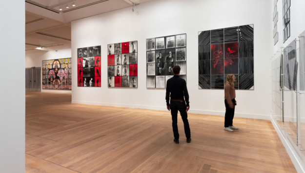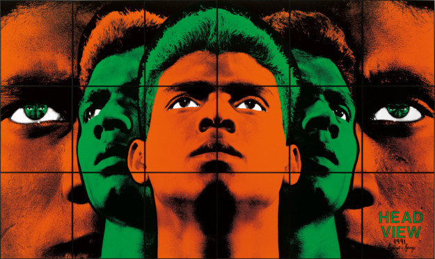 Från golv till tak fylls utställningsrummet av bilder som är på samma gång groteska och strama, surrealistiska och symboliska, men alltid i det strikta rutmönster som är duons signum. Ofta är de själva porträtterade i bilderna, med blicken riktad rakt ut mot betraktaren. Sex, pengar, hudfärg, etnicitet, social ställning och religion är återkommande i verk som lyckas förena glädje och sorg.