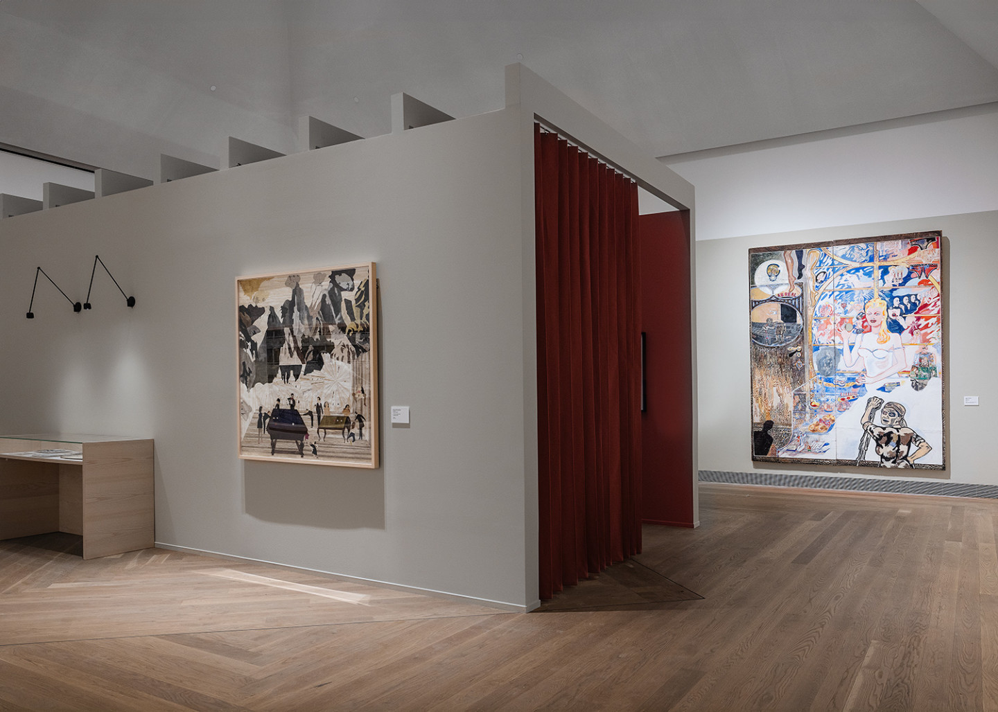 Gittan Jönsson, Amina, 2020, © Gittan Jönsson/Bildupphovsrätt 2025; Ragnar Persson, Kvällslivet vaknar och tar över, 2019, © Ragnar Persson/Bildupphovsrätt 2025. Foto: My Matson/Moderna Museet. Rebecka Tollens, Felix berg och Jack Dalla Santa. Foto: Niklas Lindelöw