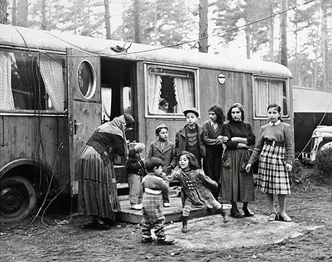 Anna Riwkin, Titel saknas. Ur serien Zigenarväg 1954-55. Stina Taikon lagar mat till sina barn i sin husvagn, 1954 © Anna Riwkin/Moderna Museet